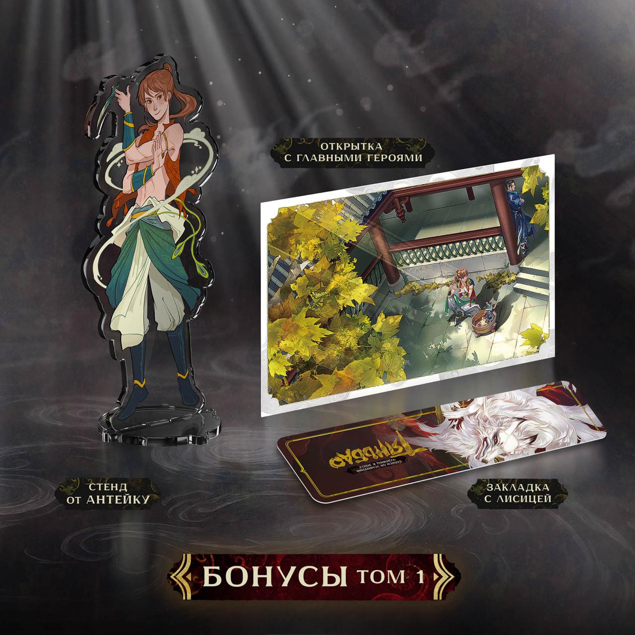 В подарок к предзаказу бонусы - два акриловых стенда, две открытки и две закладки.