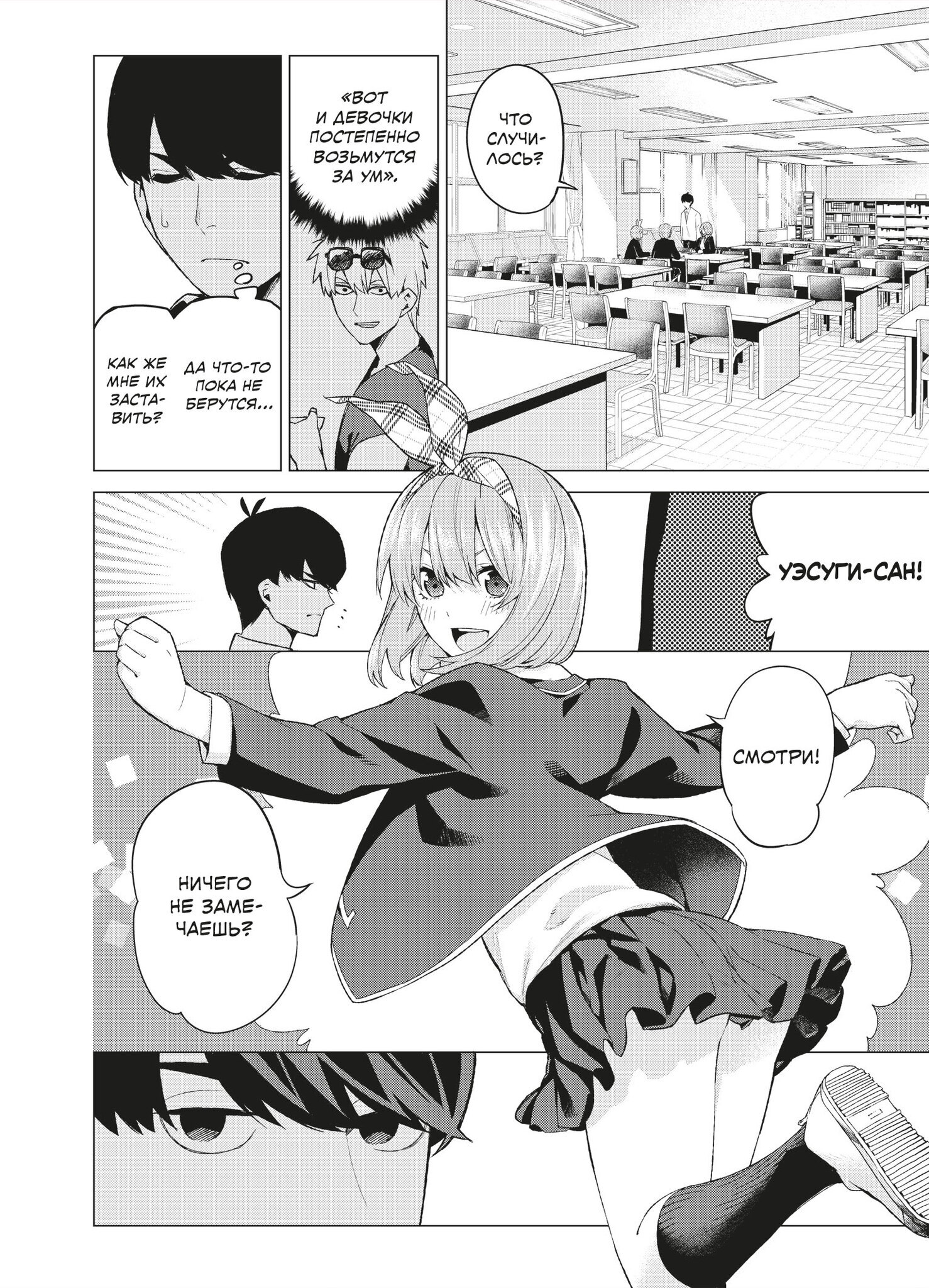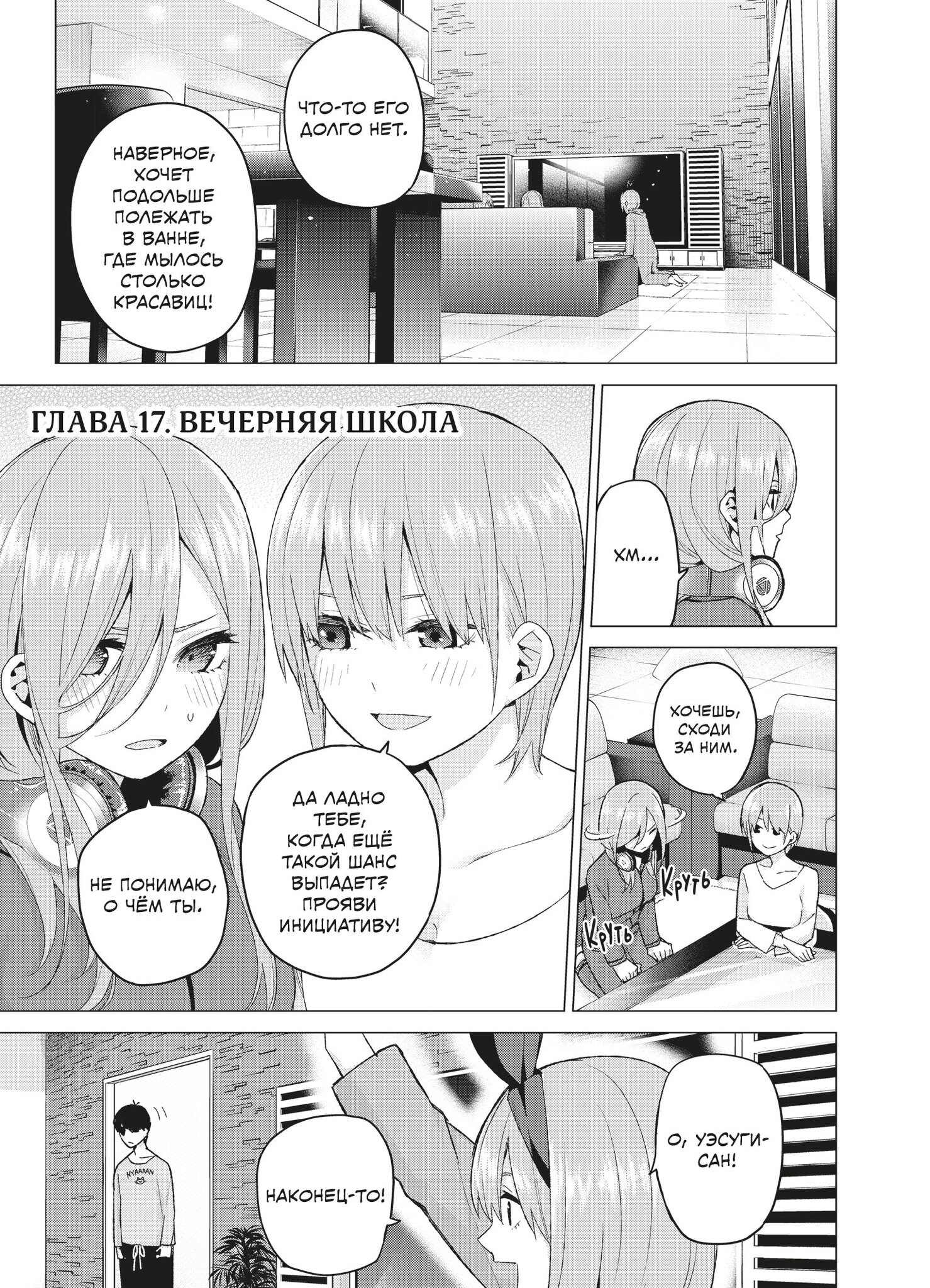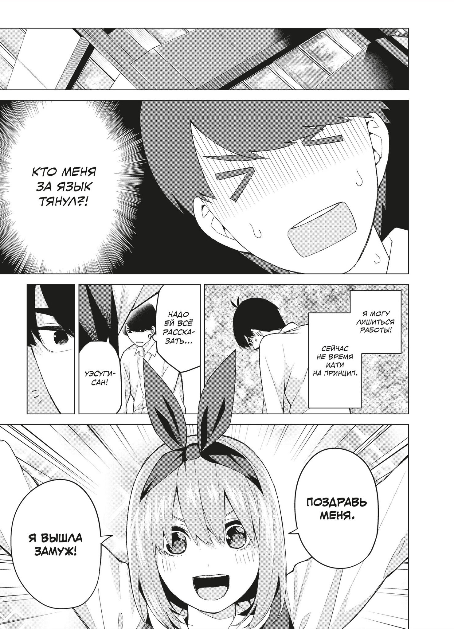 Пять сестёр Накано, поначалу не желавшие брать уроки у Футаро, постепенно проникаются к нему симпатией и соглашаются заниматься, а Футаро, в свою очередь, привязывается к ученицам: каждая из них по-своему талантлива и обаятельна. Но тут папа девочек ставит новое условие – если близняшки завалят промежуточный экзамен, он уволит репетитора раньше времени…