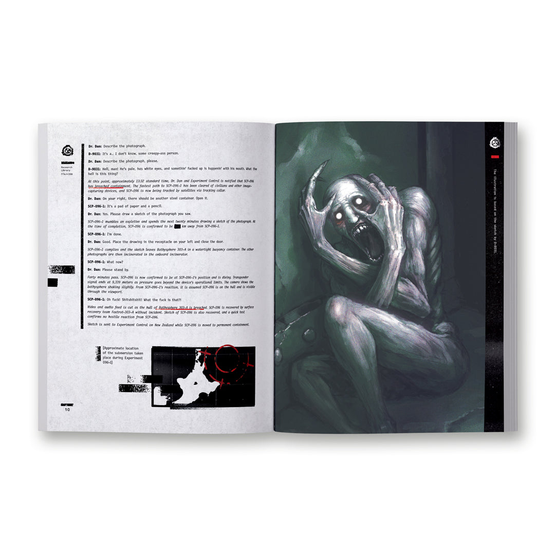 Paperback edition of the SCP Foundation art book series published by ParaBooks. The Black Journal contains such famous objects as The Shy Guy, The Sculpture, Hard-to-Destroy Reptile, Able, Cain, and many other monstrous creatures and intriguing stories that will send a chill down your spine. Read detailed reports imitating real SCP Foundation documents, complemented by additional infographic materials, and illustrated by professional artists from all around the world. The book is designed with great care to look like an authentic research journal. You can even write your name on it!