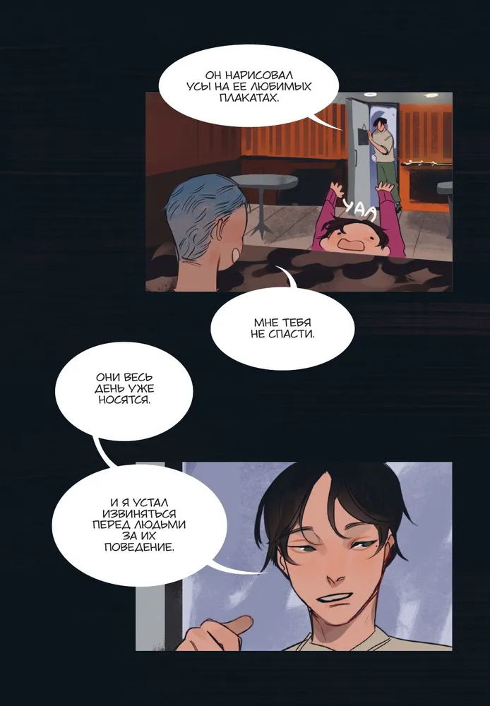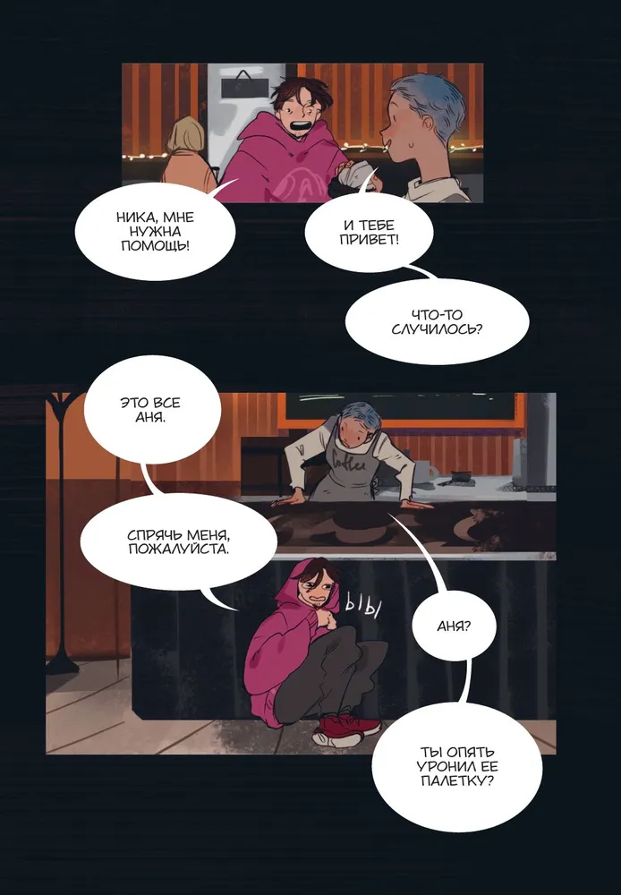 В комиксе «Жизнь пахнет ромашкой» мы познакомимся с четырьмя приятелями: Никой, Аней, Димой и Ромой. Аня привыкла во всем быть лучшей и оправдывать ожидания родителей и окружающих. Дима, младший брат Ани, — неисправимый романтик. Рома мечтает стать татуировщиком. А Ника, перескакивая с работы на работу, все ищет свое призвание. Woorie не изменяет себе и вновь рассказывает нам ламповую историю о дружбе, только теперь вместо горького аромата кофе веет свежестью ромашкового чая.